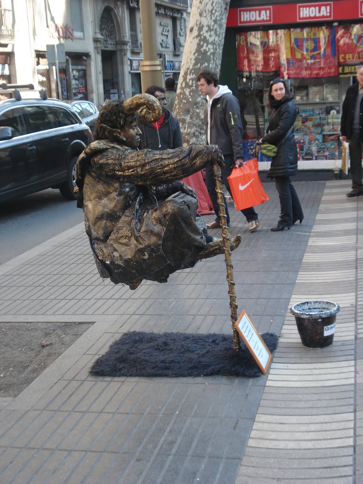 Można wrzucić monetę i zrobić sobie zdjęcie na pamiątkę. Jeśli jednak będziemy pstrykać zdjęcia, a potem nie wrzucimy nic do puszki, narażamy się na przekleństwa, wrogie miny czy złowieszcze gesty przebierańców, dzięki którym Rambla nabiera atmosfery festynu.