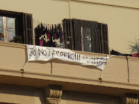 A balcony can be the place to express your views, by putting a flag of Catalunya, FC Barça, papal flag or those against his visit. Slogans, symbols, beliefs, sympathies or requests. Examples below.